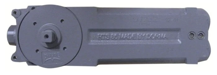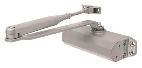 Also known as rack and pinion closers, overhead door closers are one of the most common closers out there. There are many variations of size, strength and ways to position the closer. You also have the choice of adjustable closing speed, latch action, delayed action and backcheck. Overhead door closers consist of a block body with an arm attached. Inside the body is a spring that is compressed as the door opens and released when the door closes.