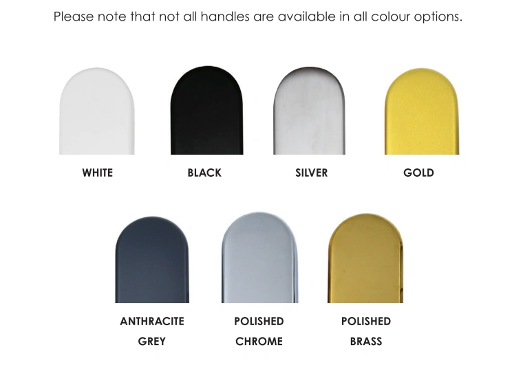 Available in a variety of finishes—white, black, chrome, brass, and silver. These handles provide more options than other brands with similar specifications. This extensive range ensures that you can find the perfect match for a range of home styles and furnishing.